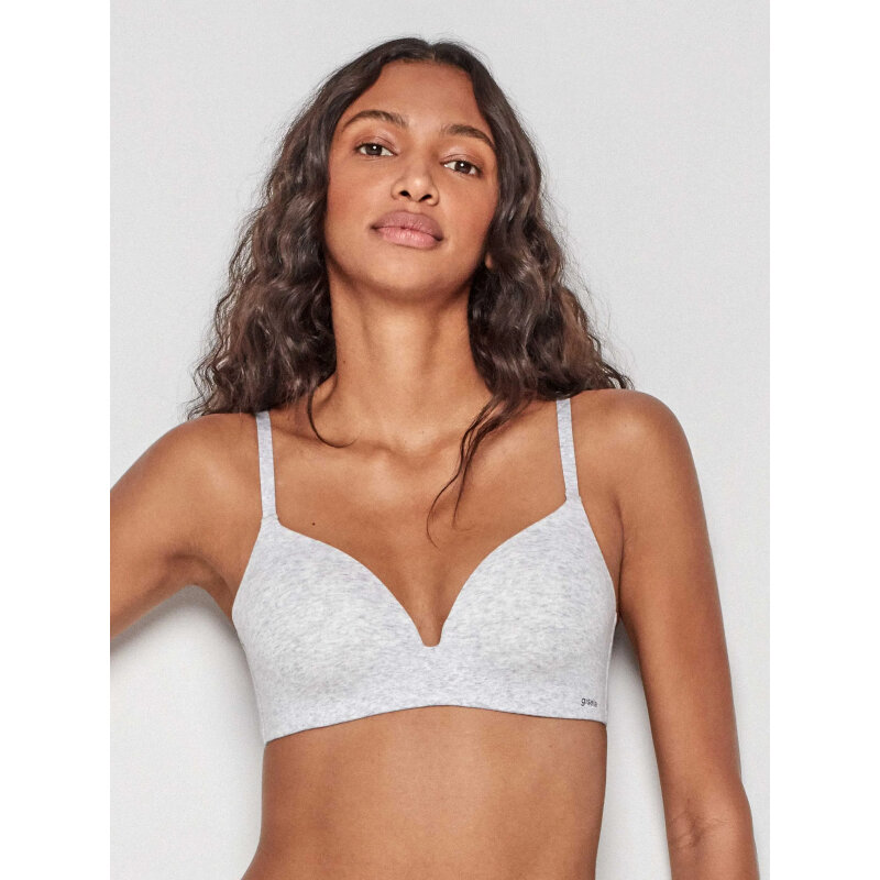 Sujetador básico sin aro, confeccionado en suave tejido de algodón. Tirantes regulables y cierre trasero de cuatro posiciones.